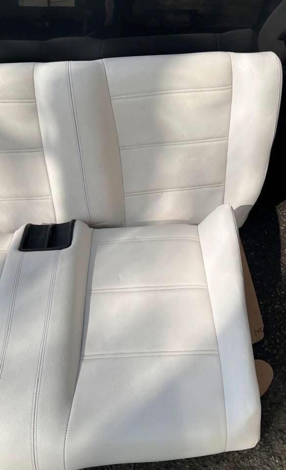 ✔ Complete white leather interior, including matching front seats and rear bench for a cohesive and classy look.